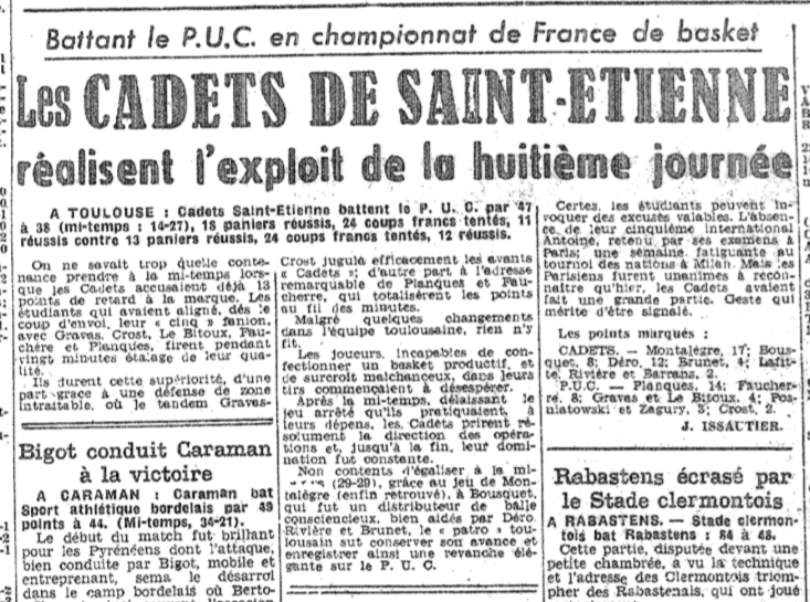 Le CSE Toulouse bat la grande équipe du PUC en première division nationale (1952)